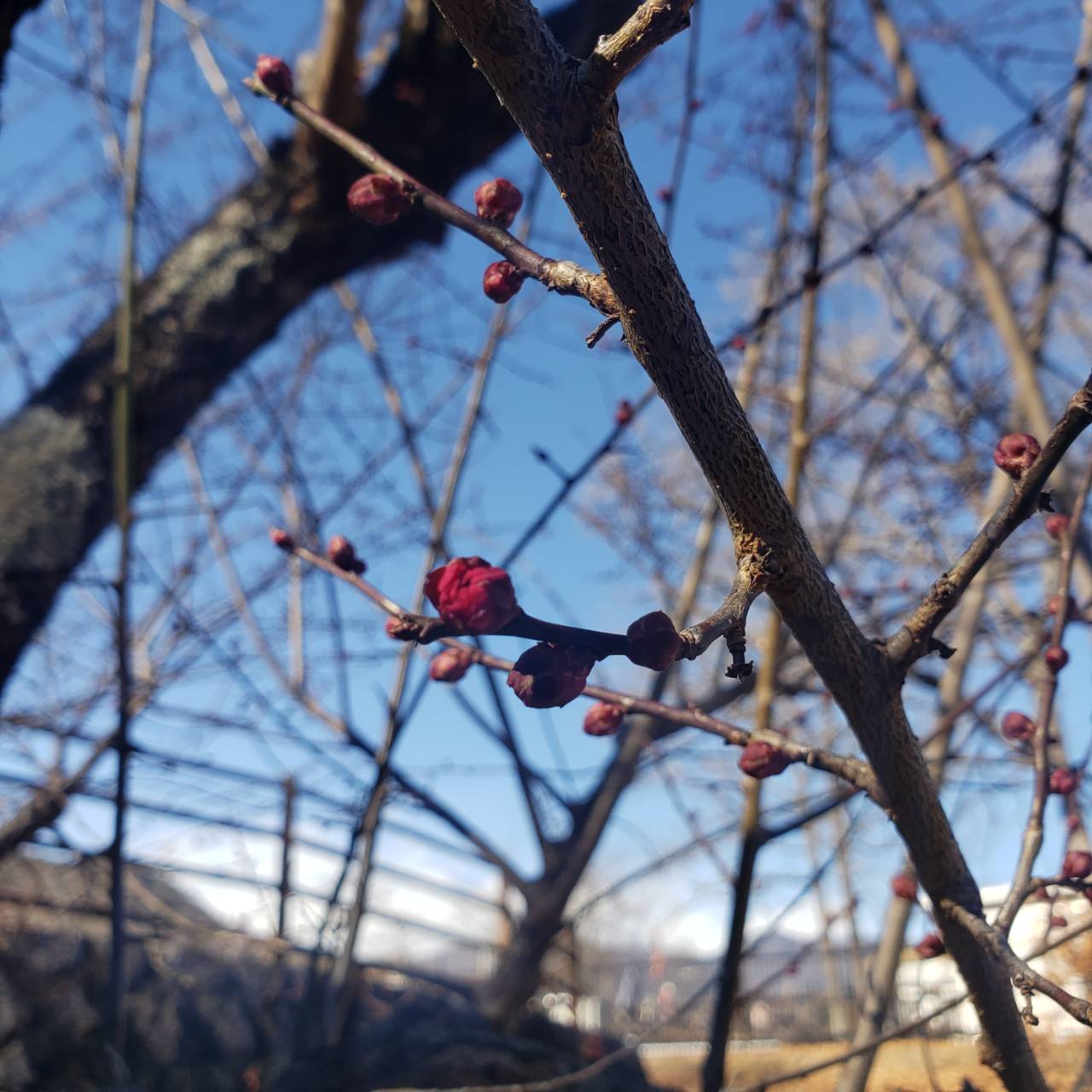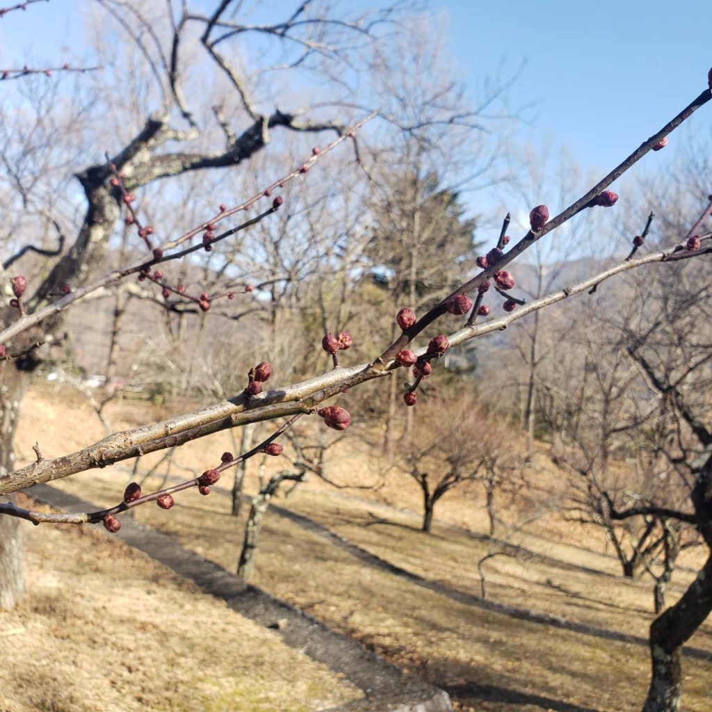 紅梅のつぼみがつきはじめ、ところどころ開きそうな予感です。例年2月頃には紅梅と白梅の花を楽しむことができます。