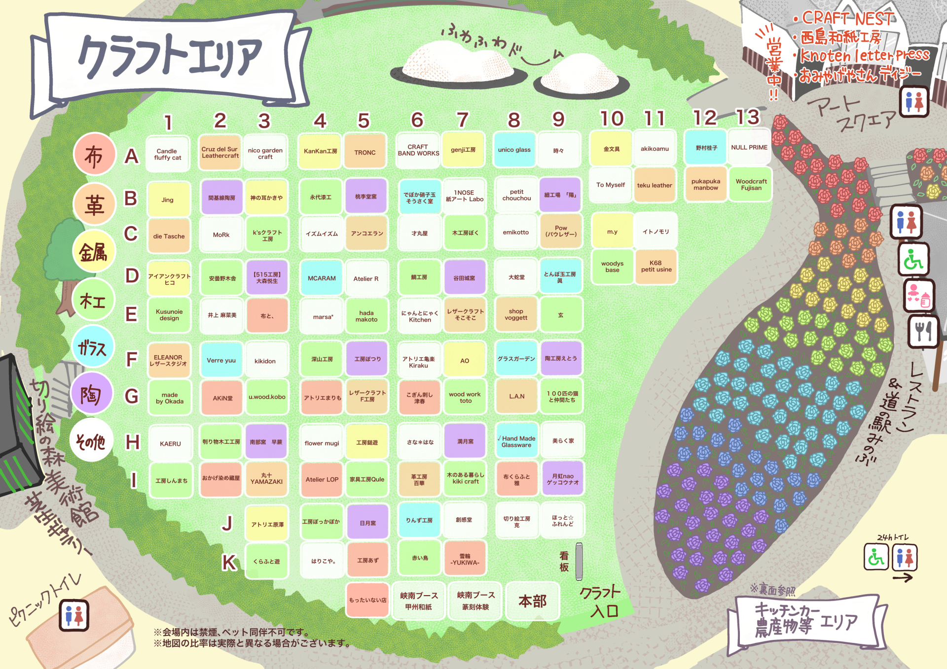CRAFT BAND WORKS、1NOSE 紙アート Labo、切り絵工房 克、はりこや。、 Candle fluffy cat、akikoamu、NULL PRIME、nico garden craft、時々 、To Myself、petit chouchou、イトノモリ、MoRk、イズムイズム、才丸屋、emikotto、Atelier R、大蛇堂、井上 麻菜美、marsa*、にゃんとにゃくKitchen、kikidon、アトリエ亀楽Kiraku、KAERU、flower mugi、さな*はな、美らく家、創感堂、ほっと☆ふれんど