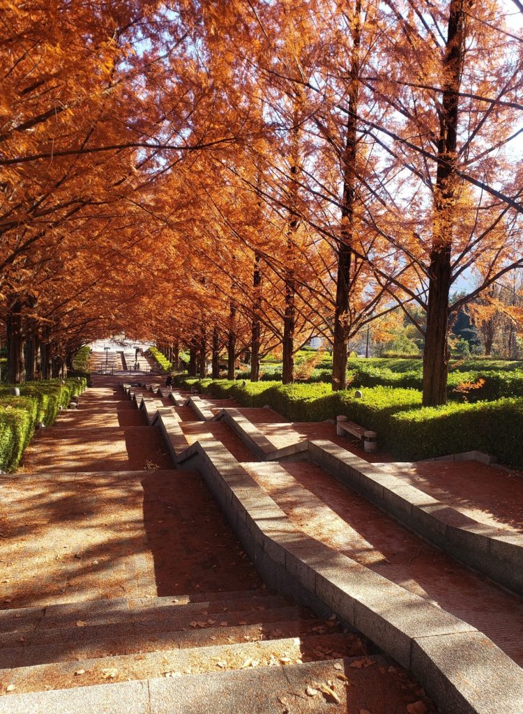 12月頭にかけて赤くなり、絨毯のように地面に落ち葉が散り始めます。