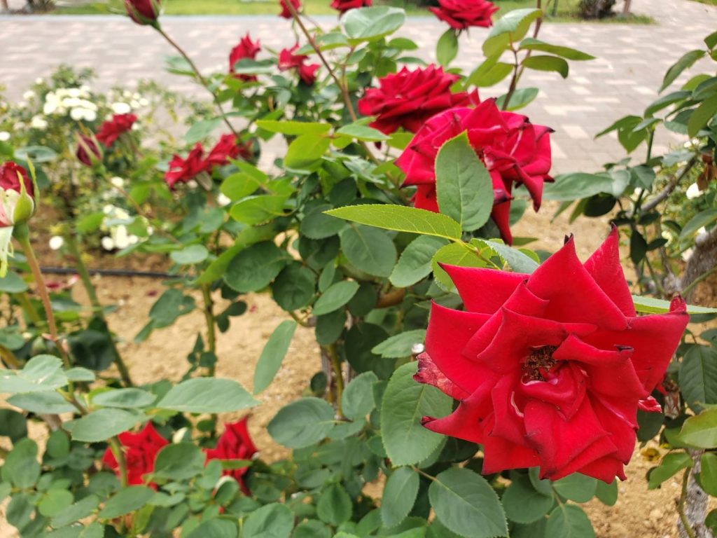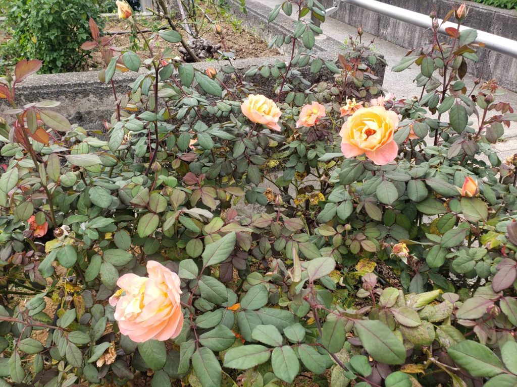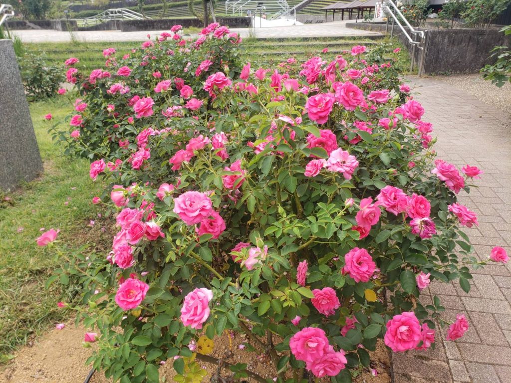 秋バラがところどころに咲いてきました。春より落ち着いていますが、十分見て楽しめるくらい咲いています。