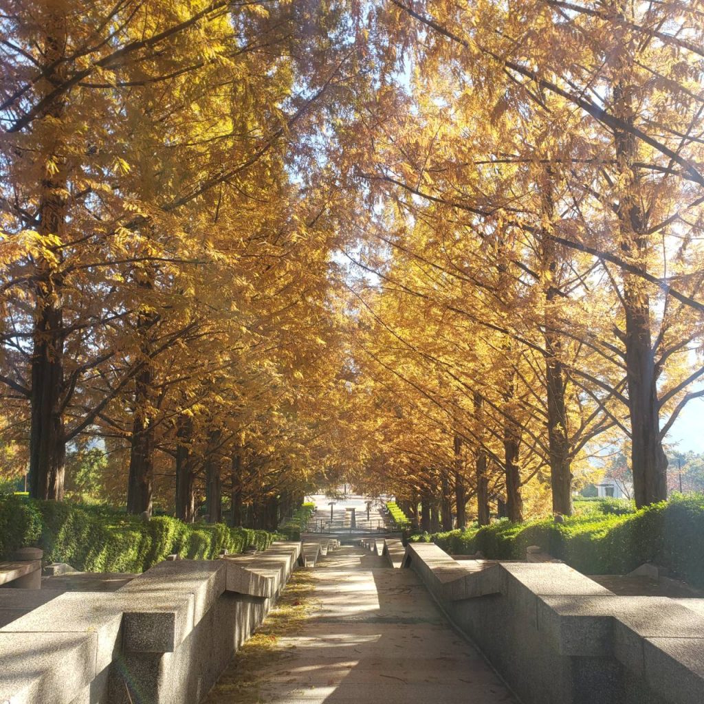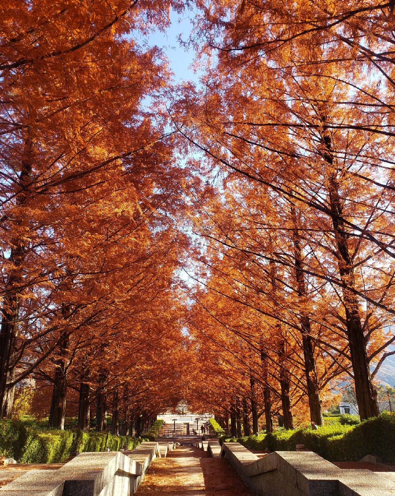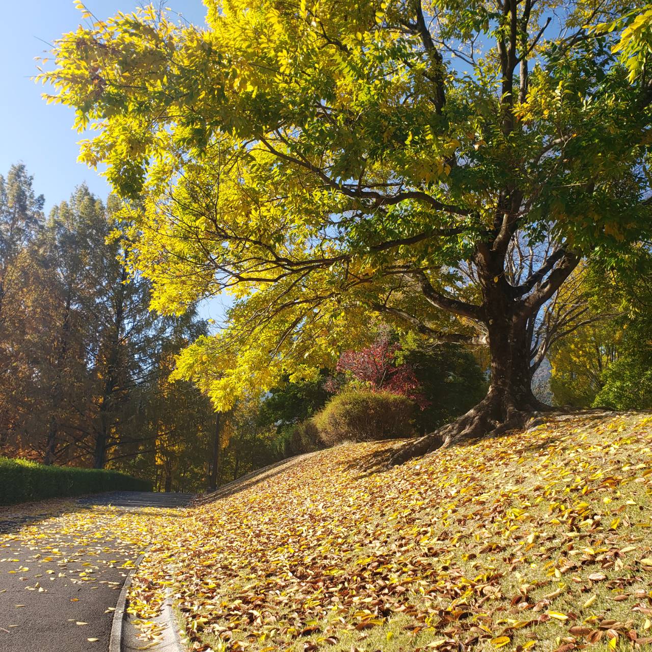 12月頭にかけて赤くなり、絨毯のように地面に落ち葉が散り始めます。
