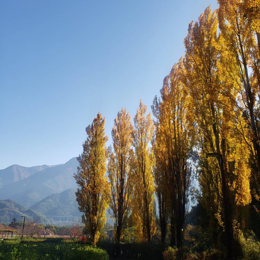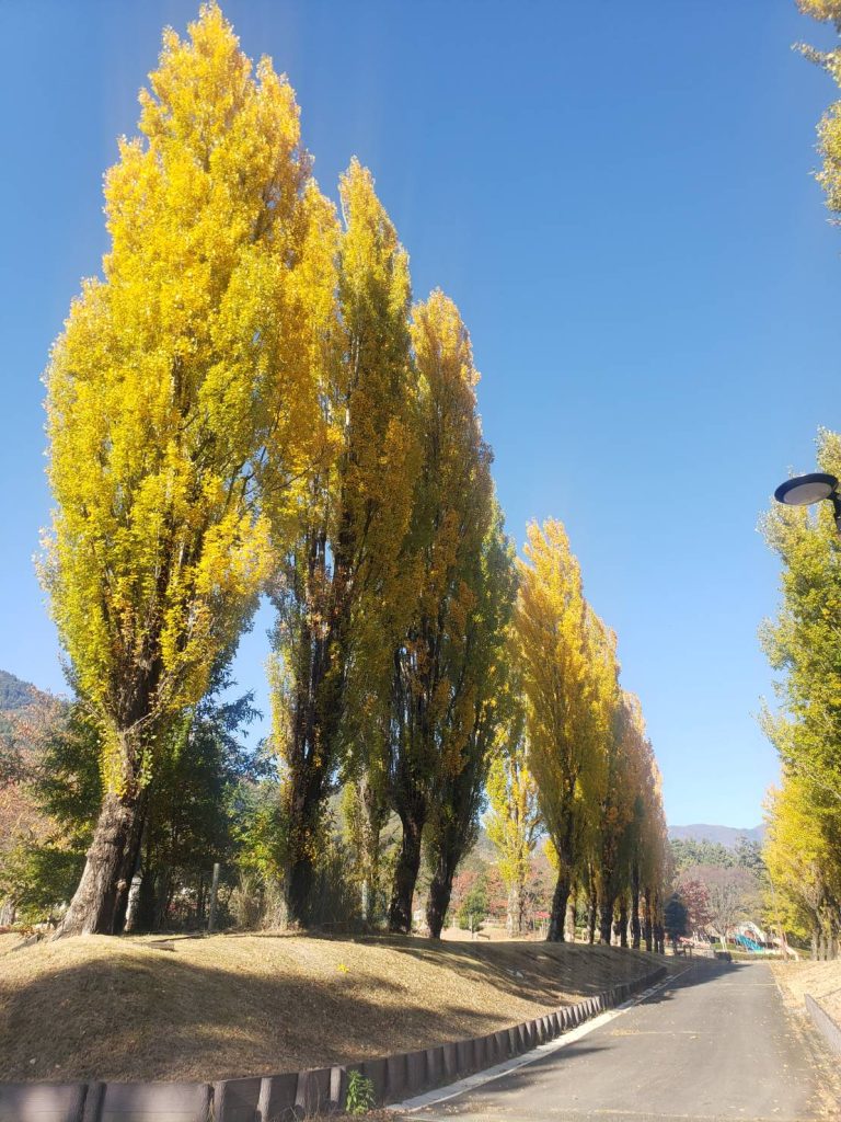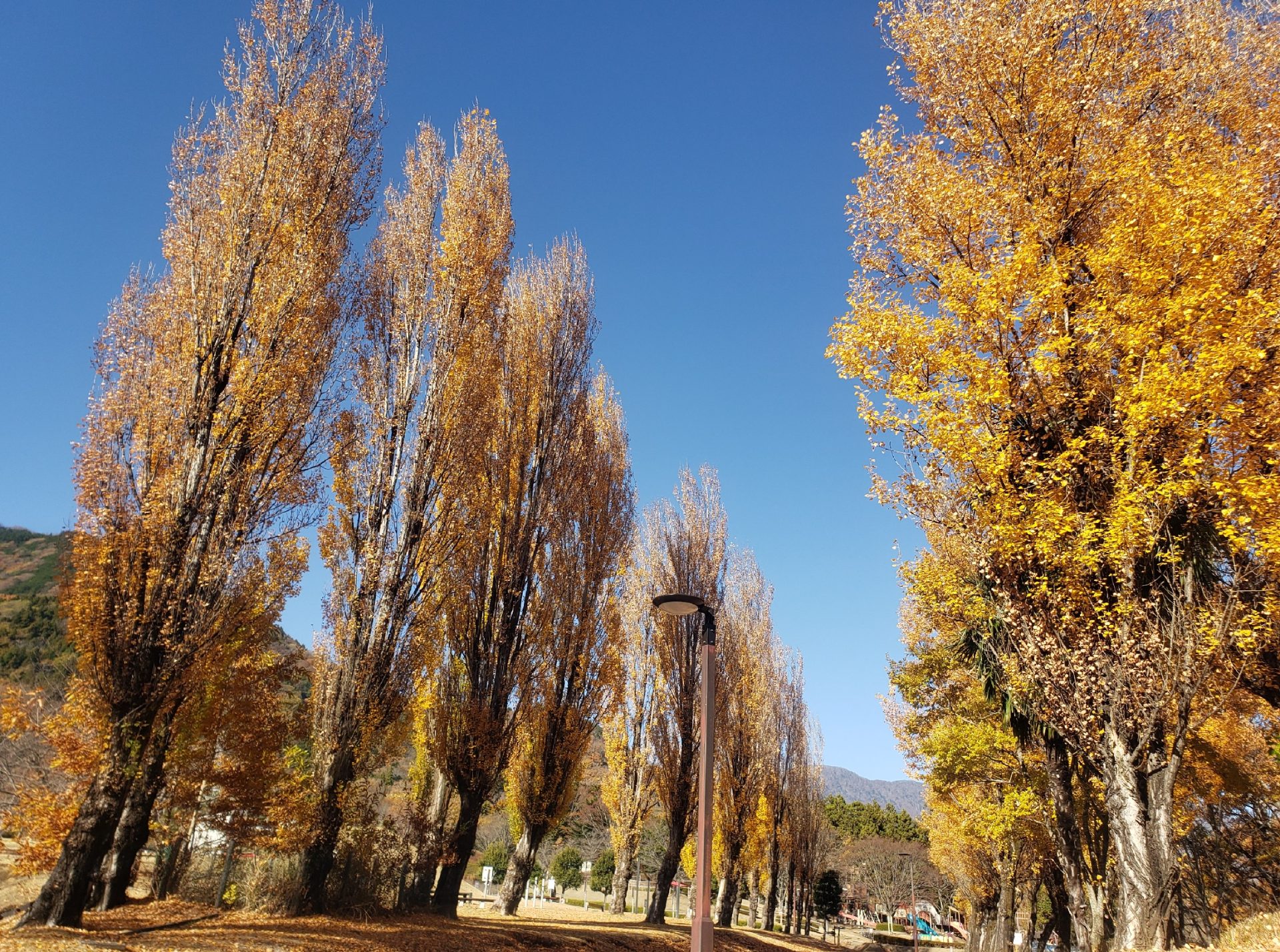ポプラは葉が散り始めました。場所によってはまだ綺麗に見られます。